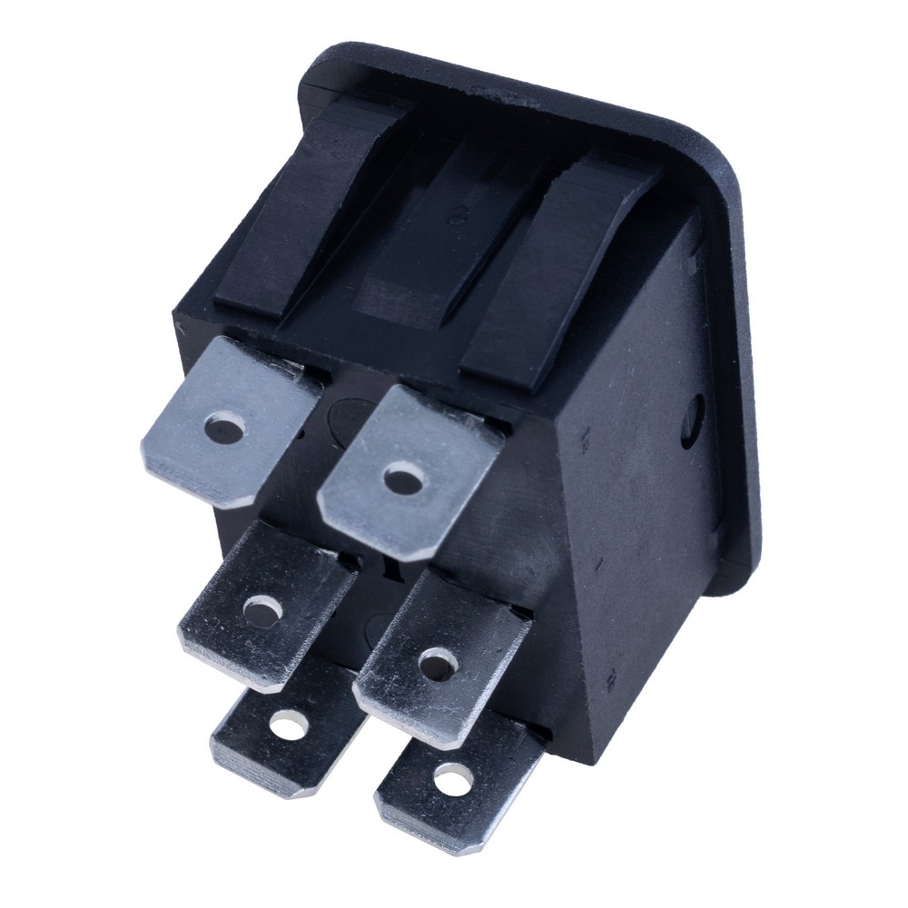 Опис Опис: Перемикач з фіксацією (ON без фіксації)-OFF-(ON без фіксації). Кількість контактів: 6. Колір: чорний. Розмір монтажного отвору: 30x22mm.