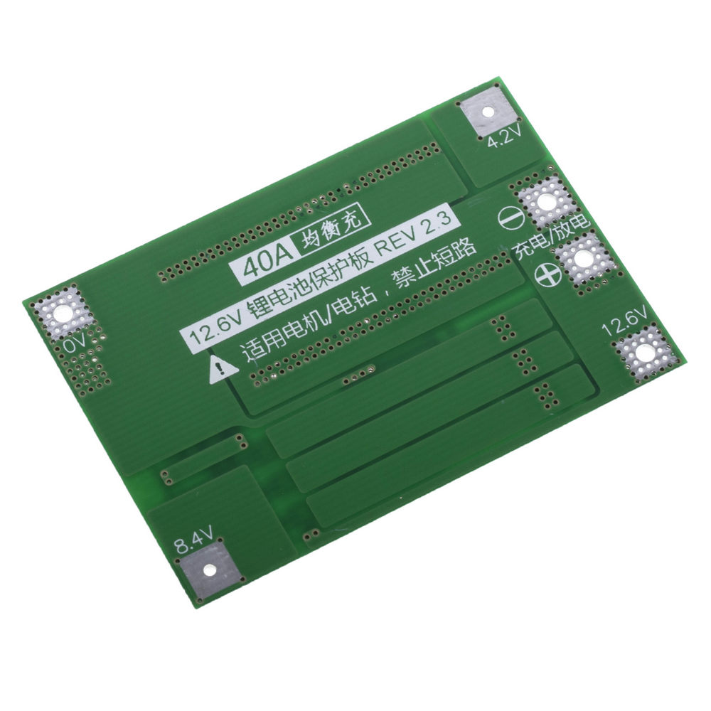 Виробник: Опис: Плата захисту для 3-х акумуляторів (3S) LI-ION з балансиром. Напруга зарядки: 12,6 В ~ 13,6 В, струм максимальний 40А при умові додаткового охолодження (при недостатньому охолодженні рекомендовано не більше 20А).