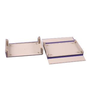 Description: BOX ABS GRAY 7.48"L X 5.51"W, Features: PCB Supports, Packaging: Bulk, Color: Gray, Size / Dimension: 7.480" L x 5.512" W (189.99mm x 140.00mm), Material: ABS, Height: 1.988" (50.50mm), Design: Split Sides and End Panel(s), Ratings: IP43, Container Type: Box, Material Flammability Rating: UL94 HB, Area (L x W): 41.2in² (266cm²).