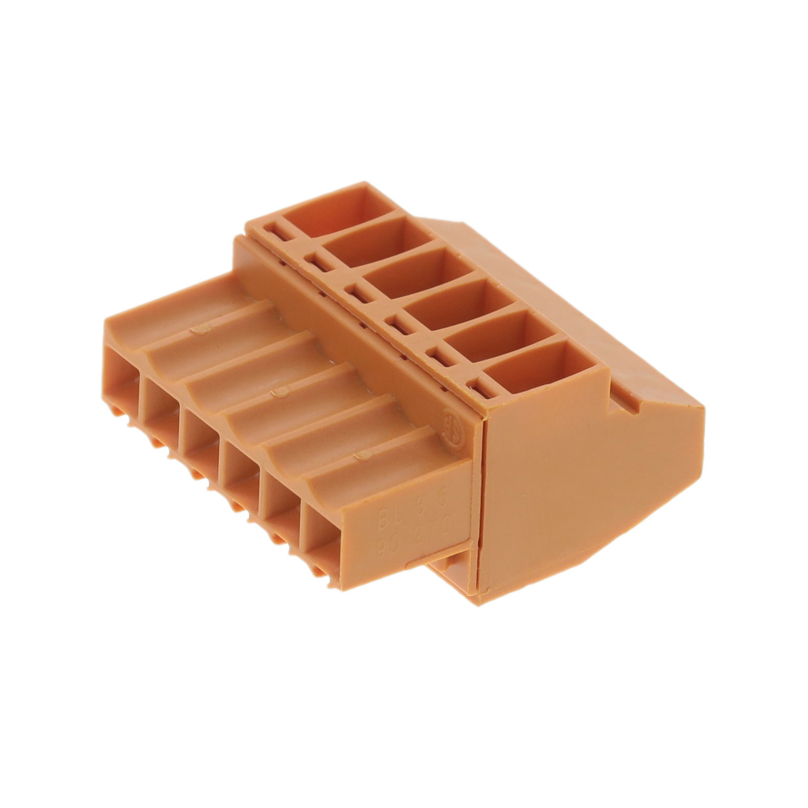 Description: TERM BLOCK PLUG 6POS 3.50MMPackaging: Bulk Color: Orange Mounting Type: Free Hanging (In-Line) Number of Positions: 6 Pitch: 0.138" (3.50mm) Type: Plug, Female Sockets Operating Temperature: -50°C ~ 100°C Termination Style: Screw - Clamping Yoke (Tension Sleeve) Current - IEC: 12A Number of Levels: 1 Wire Gauge or Range - AWG: 14-28 AWG Wire Gauge or Range - mm²: 0.2-1.5mm² Positions Per Level: 6 Plug Wire Entry: 90° Contact Mating Finish: Tin Part Status: Active Current - UL: 8 A Voltage - IEC: 320 V Voltage - UL: 300 V |