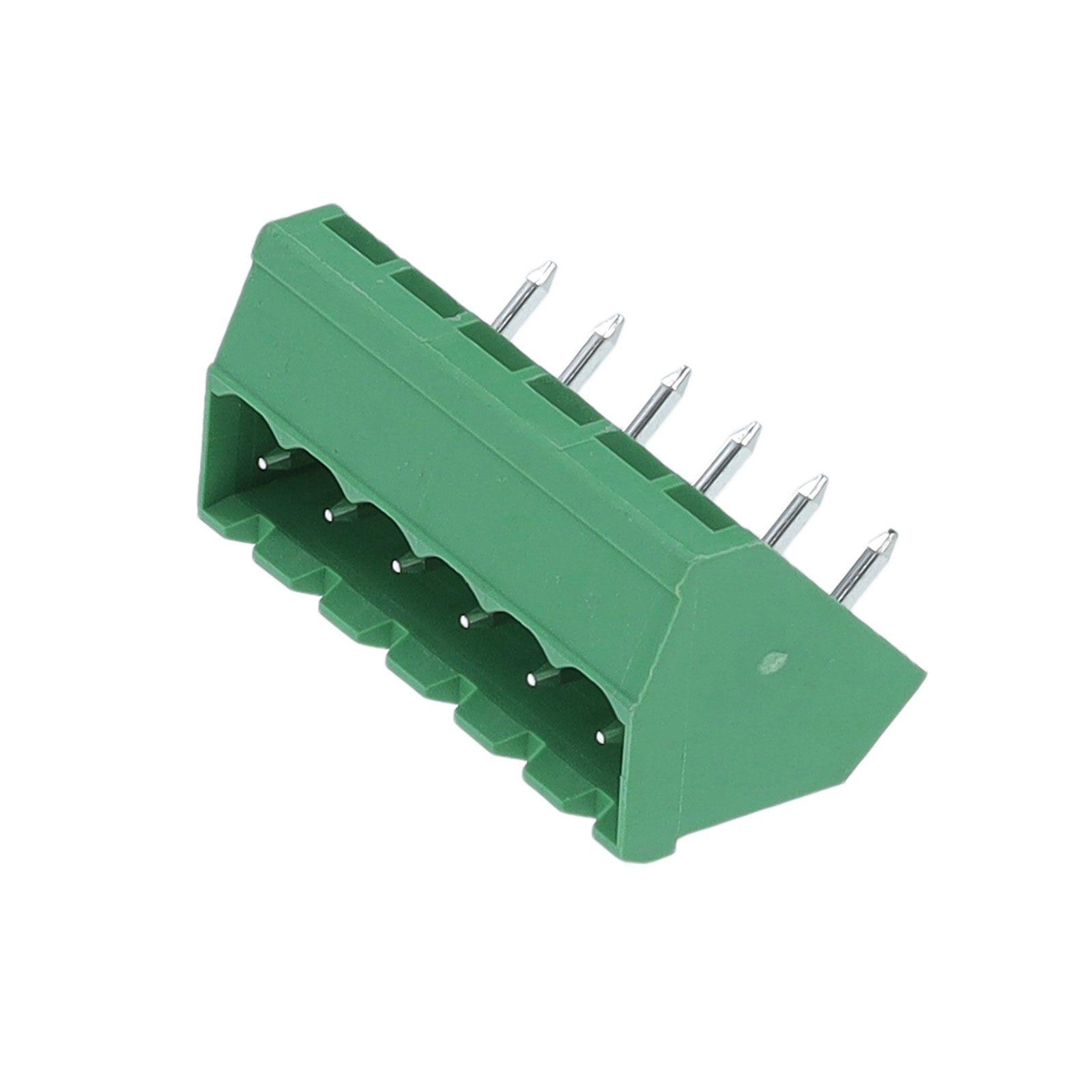 Description: TERM BLOCK 6POS 45DEG 7MM PCBPackaging: Bulk Color: Gray Mounting Type: Through Hole, Kinked Pin Wire Gauge: 16-30 AWG Pitch: 0.276" (7.00mm) Mating Orientation: 45° (135°) Angle with Board Positions Per Level: 6 Wire Termination: Screwless Part Status: Active Current: 4 A Number of Levels: 1 Voltage: 300 V |